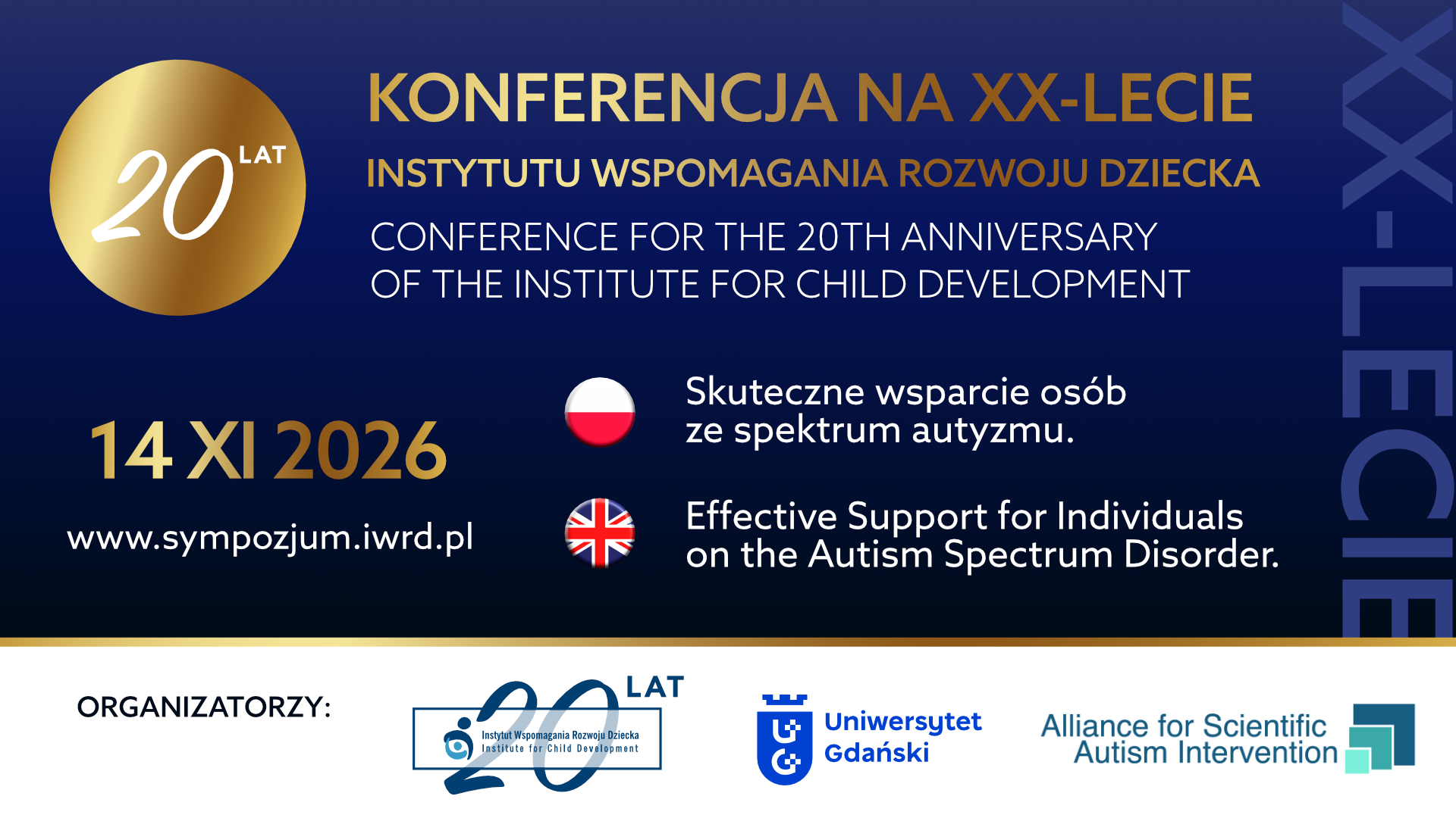 Konferencja na XX-lecie Instytutu Wspomagania Rozwoju Dziecka odbędzie się w auli Uniwersytetu Gdańskiego (szczegóły wkrótce). Program będzie obejmował 10 wykładów przygotowanych przez specjalistów z USA, Turcji, Norwegii i Polski.